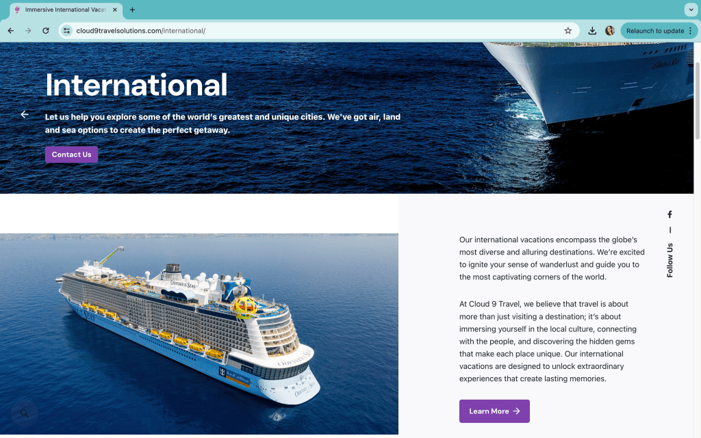Website for Cloud 9 Travel Solutions