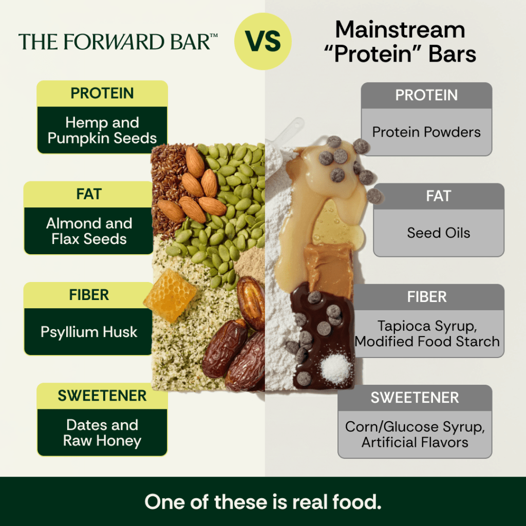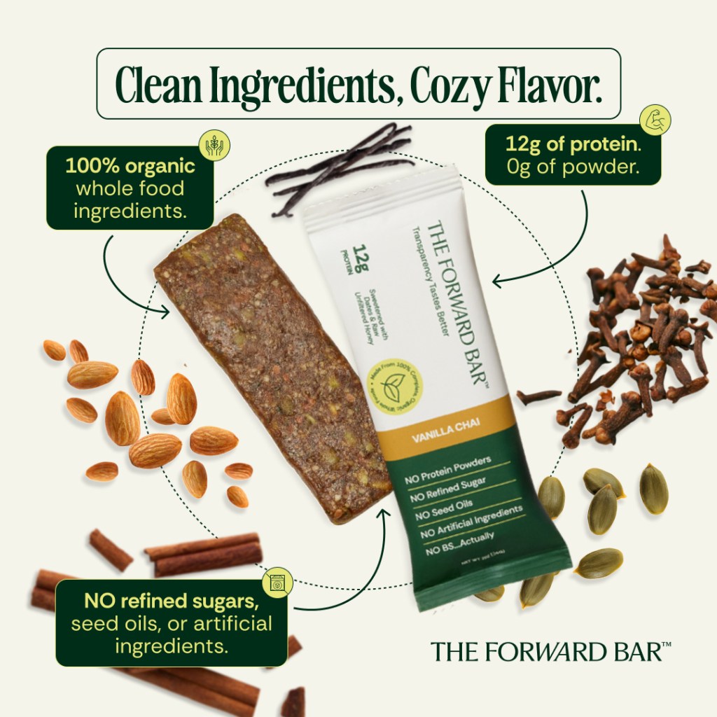 There are a lot of protein bar haters out there, because there are a lot of reasons to hate protein bars – chalky texture, poor bioavailability, and artificial sweeteners and flavors. THE FORWARD BAR is an organic, whole foods bar with naturally occurring protein. It’s the perfect snack for all protein bar haters.