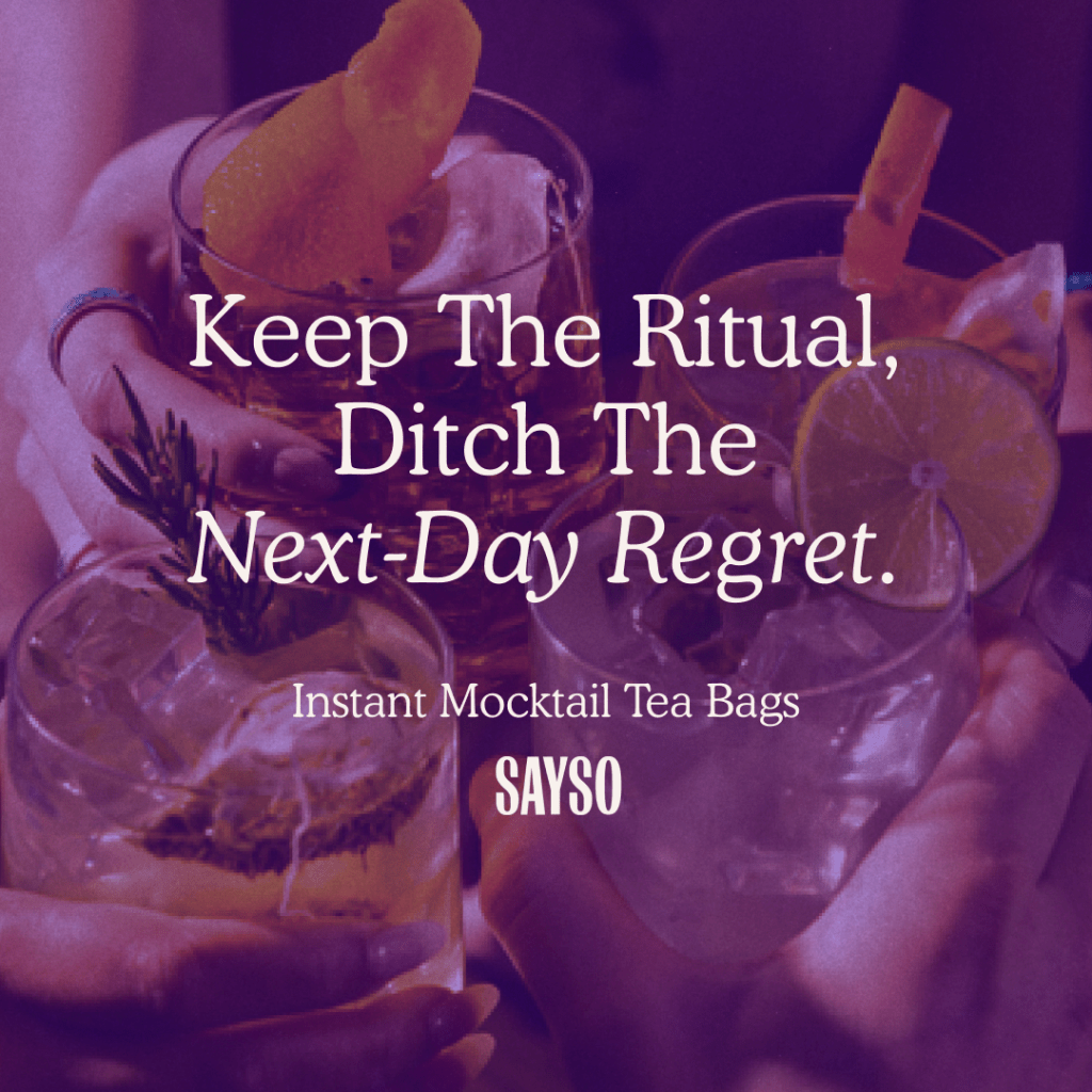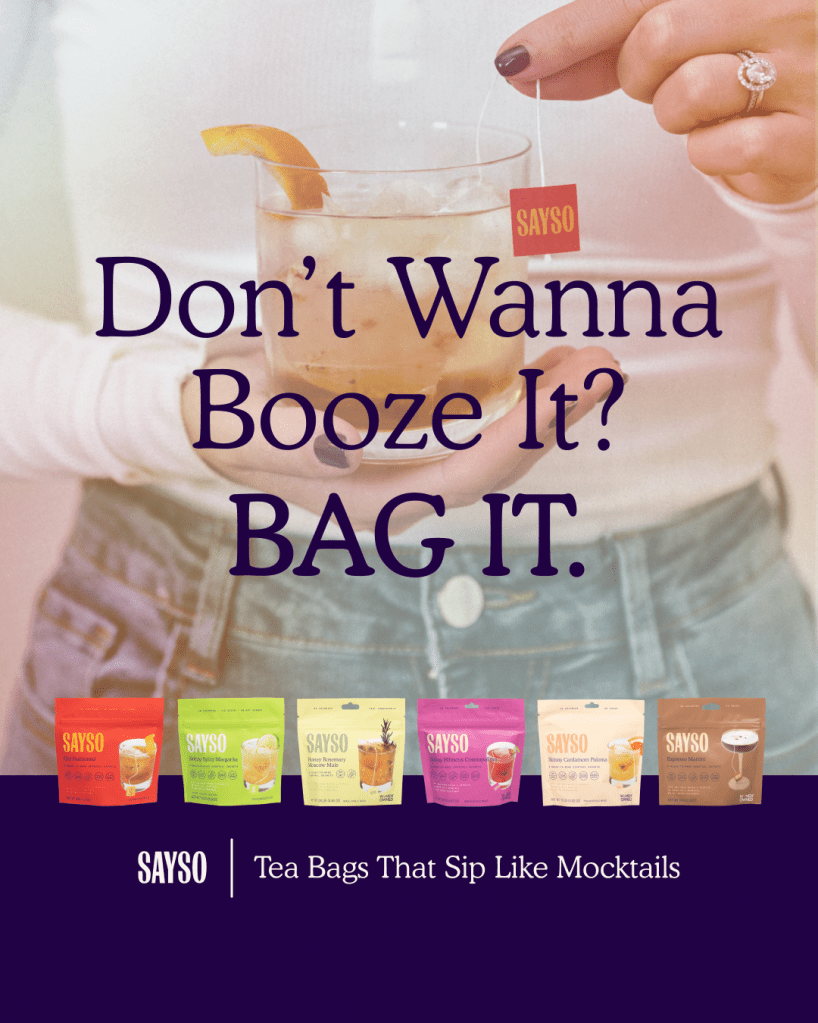 Founded by two bad*ss Harvard Business women, SAYSO is the first craft cocktail tea bag. Sayso marketed the unique convenience of a tea bag paired with the quality of a premium cocktail. Likewise, with mocktails gaining popularity, Sayso targeted consumers looking for a virgin option that felt more sophisticated than powder mixes and more affordable than bar-made mocktails.